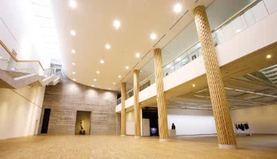 研究発表やイベント開催の場として、学内のスペースを活用できることも特長の一つ。国内外のアーティストが作品展示を行う「ギャルリ・オーブ」や、四代目市川猿之助氏が芸術監督を務める大劇場「春秋座」など、大型施設・教室を目的に応じて活用できます。