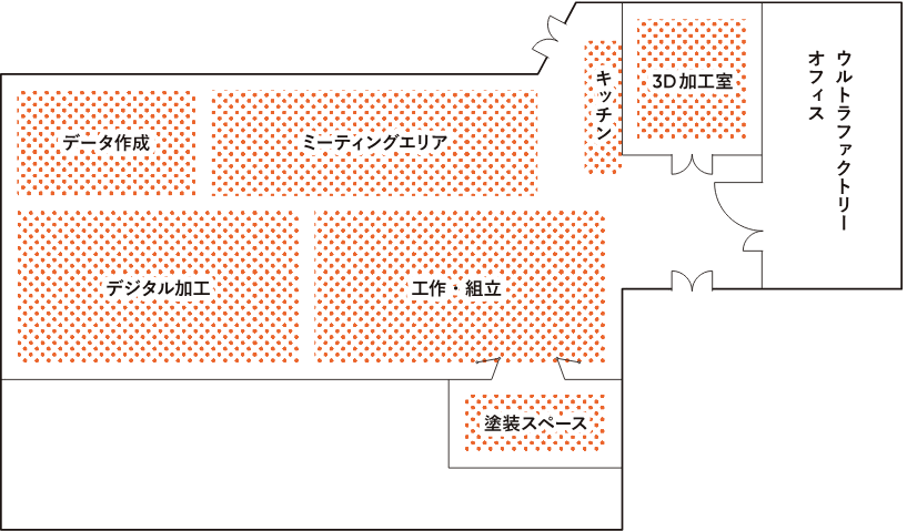 あらゆる機械と工具が揃い、技術スタッフが革新的なものづくりをサポートします。金属、木材、樹脂加工のほか、シルクスクリーンやデジタル造形が自在に可能。測定器、環境試験機などの検査機器も充実しており、最新鋭ツールで産業レベルのクオリティを実現できます。
