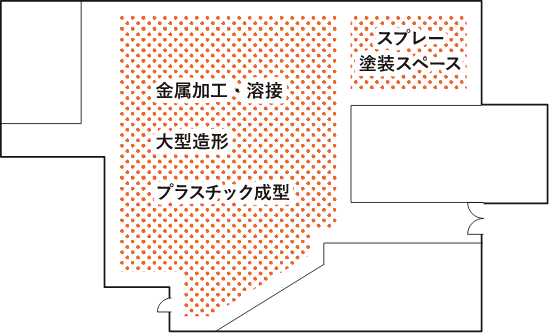 工作機器と、金属加工・樹脂成型・木工加工の設備機械を備え、